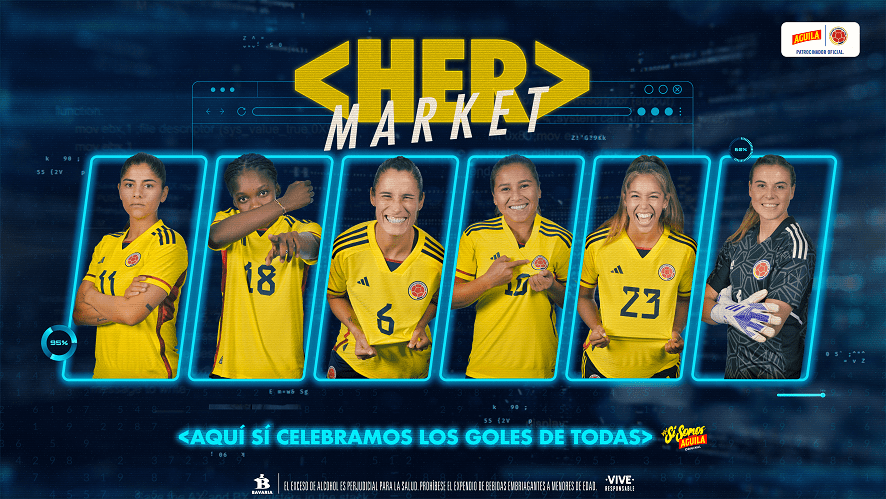 Respondiendo a la falta de representación de futbolistas mujeres en las plataformas de fichajes, Cerveza Aguila, la marca patrocinadora del fútbol colombiano creó Her Market, una plataforma exclusiva para visibilizar la información de las jugadoras de la Selección Colombia.
