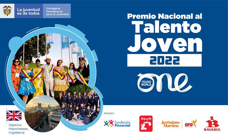 El Gobierno del Presidente Iván Duque lanzó la tercera versión del Premio Nacional al Talento Joven (PNTJ), liderado por la Primera Dama de la Nación, María Juliana Ruiz, en trabajo conjunto con la Consejería Presidencial para la Juventud y en alianza con One Young World (OYW), la comunidad global para jóvenes líderes que identifica, promueve y conecta a los líderes más influyentes del mundo. La convocatoria al Premio estará abierta desde este 30 de junio hasta el 7 de julio de 2022 a las 6:00 p. m. (horario de Colombia).